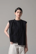 Pleated, asymmetric cut, breathable and effortlessly refined.