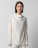 Crafted from smooth, soft-touch fabric, the blouse features a naturally flowy front drape that moves effortlessly with the bod, creating a silhouette from layer soft. Subtle stitch details along the sleeves and side seams reflect thoughtful craftsmanship, adding depth without disrupting its calm simplicity.