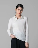 Longsleeve blouse modern twist. This ribbed polo top features a sleek half-zip front and structured collar.The short sleeves and slim fit make it ideal for casual days, office settings, pairing with jenas for minimal look.